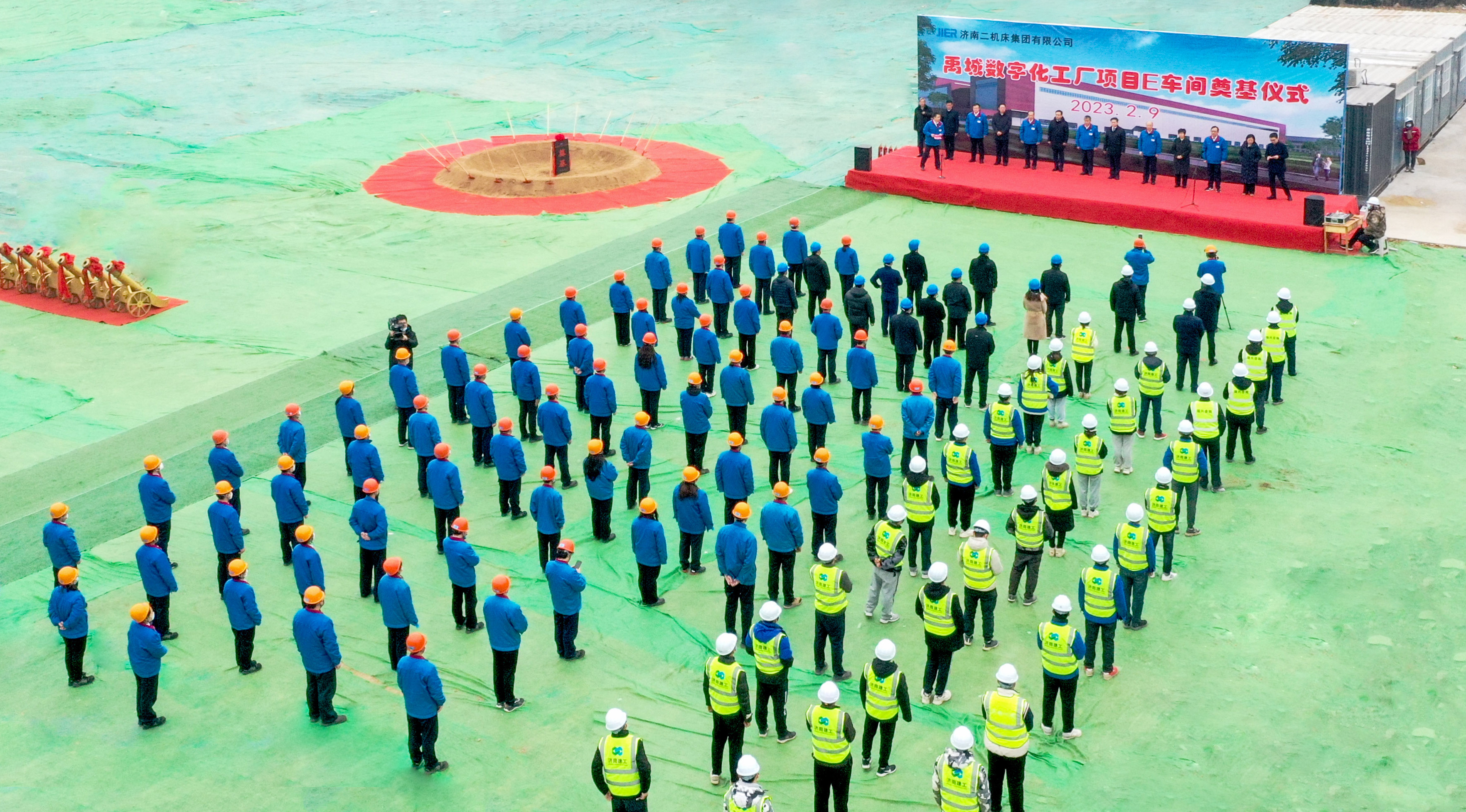 最后,参加仪式的领导共同为禹城数字化工厂项目E车间奠基。