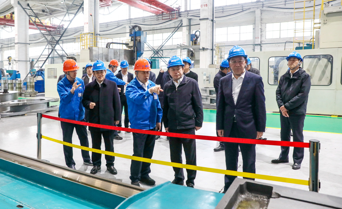4月6日上午,山东省副省长周立伟来济南二机床调研技术研发及生产经营情况。省政府副秘书长王健,省工信厅厅长张海波,济南市委常委、副市长孙斌以及市政府副秘书长吴剑、市科技局局长陈西武、市工信局局长汲佩德、市国资委副主任杨秀华等领导陪同调研。济南二机床党委书记、董事长张世顺,党委副书记任立伟陪同来访领导参观了生产现场,并进行了座谈交流。